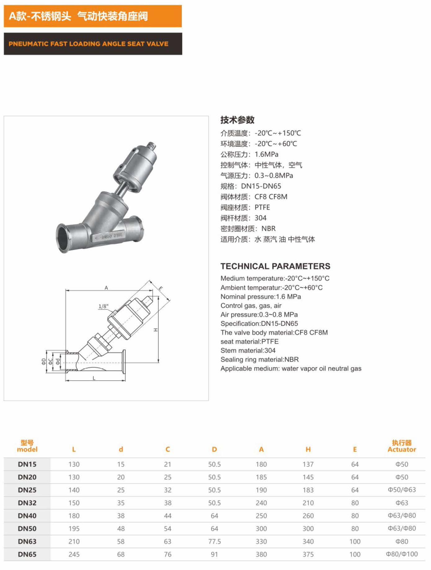 A款 不锈钢头 气动快装角座阀